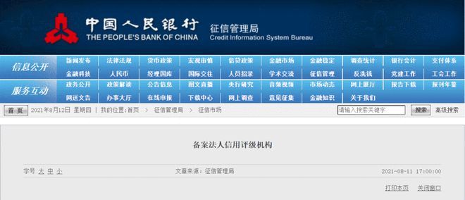 2021年8月11日,中国人民银行征信管理局网站“征信市场”栏目更新动态,并发布了一则消息: